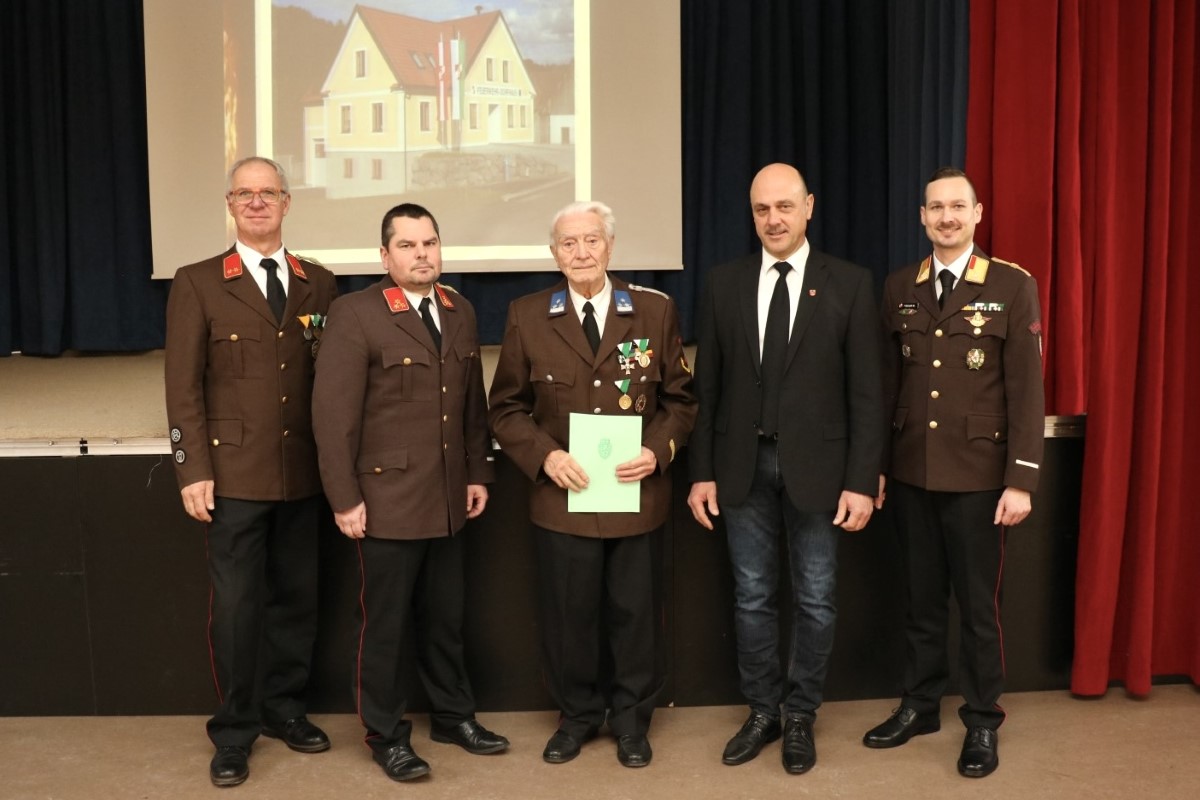 Im feierlichen Rahmen wurden auch verdiente Mitglieder ausgezeichnet. Ehrungen für 25, 40 und 50 Jahre Feuerwehrdienst wurden überreicht, zudem konnte Kamerad Karl Maitz für seinen außergewöhnlichen 60-jährigen Dienst in der Freiwilligen Feuerwehr Schützing geehrt werden.